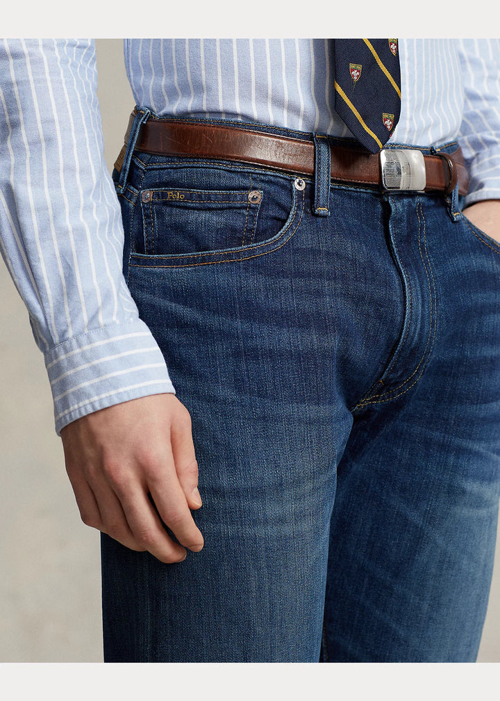 Five-pocket styling with signature metal rivets. "Polo" label on the coin pocket.