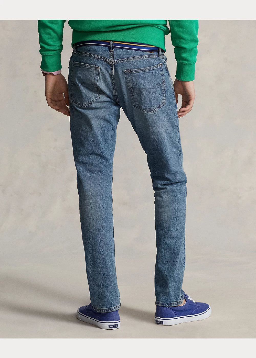 Five-pocket styling with signature metal rivets. Woven "Polo" label at the coin pocket.