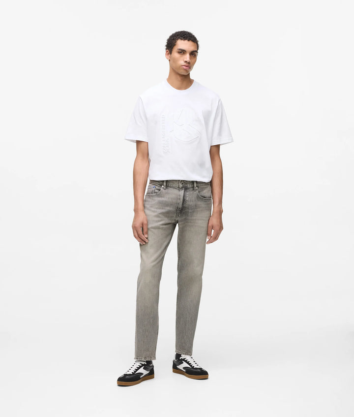 These tapered jeans deliver a versatile silhouette with just enough edge. Signature embroidery and branded hardware add unique touches, while the KARL LAGERFELD JEANS logo patch anchors the confident look.