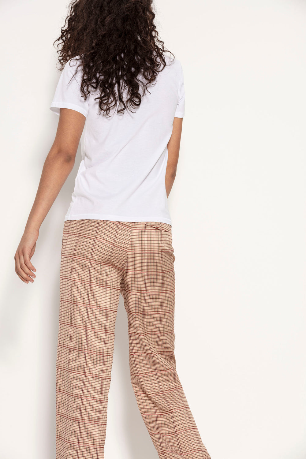 Straight-cut t-shirt made of pure cotton with a ribbed round neck. A statement print is integrated in the multicolored front print.