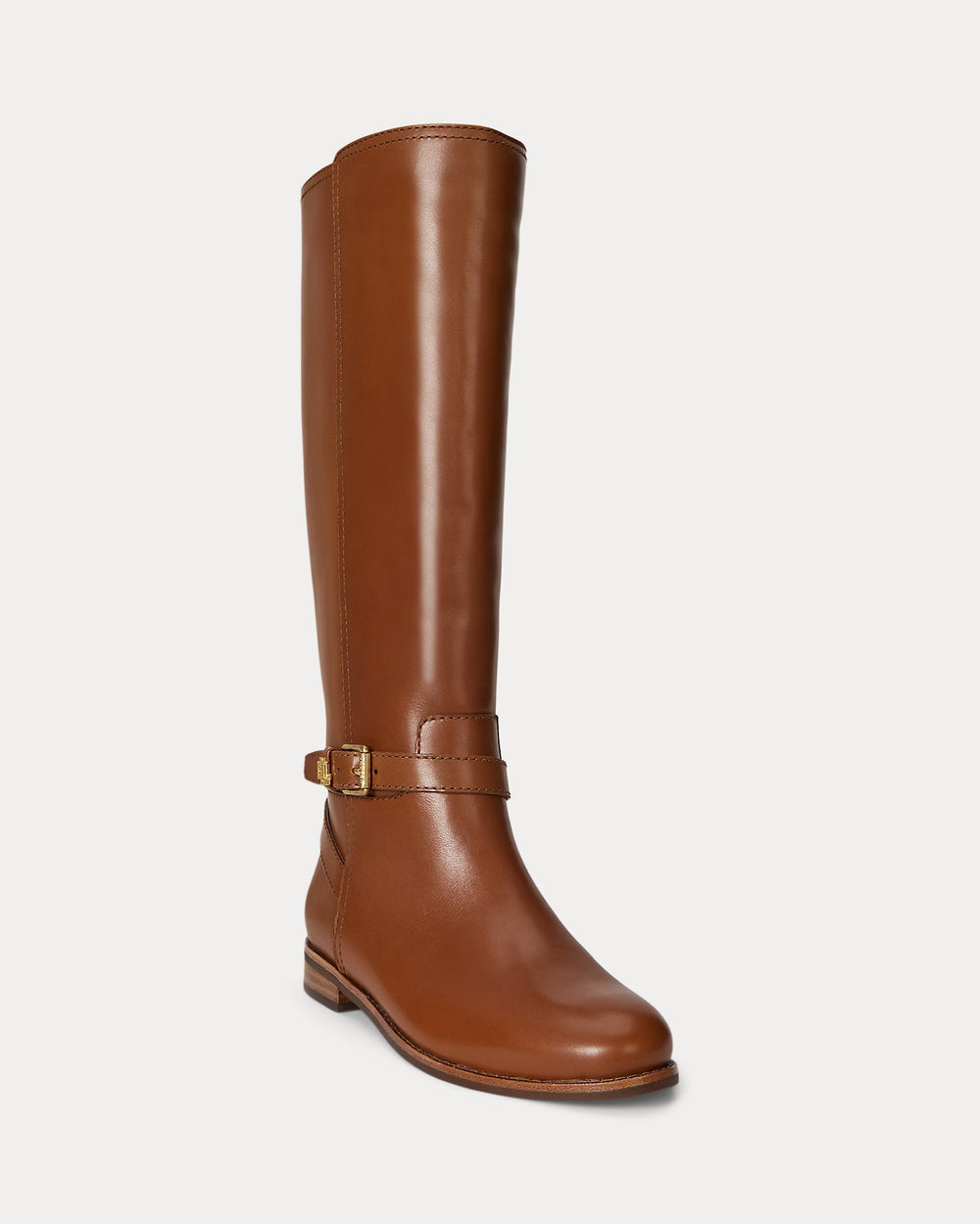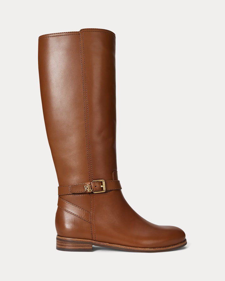 Paying homage to Ralph Lauren's equestrian-inspired heritage, the Brooke riding boot is defined by a streamlined silhouette, a stacked leather heel and a crisscross ankle strap with an "LRL" keeper. A seasonal essential, this style is crafted with luxuriously smooth calfskin, enhancing its sophisticated appeal.