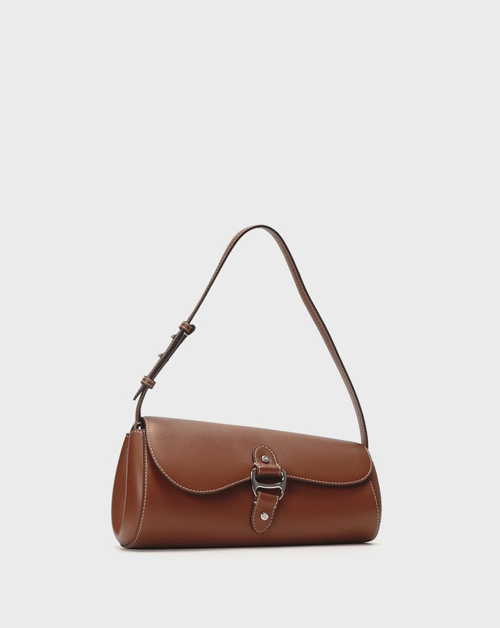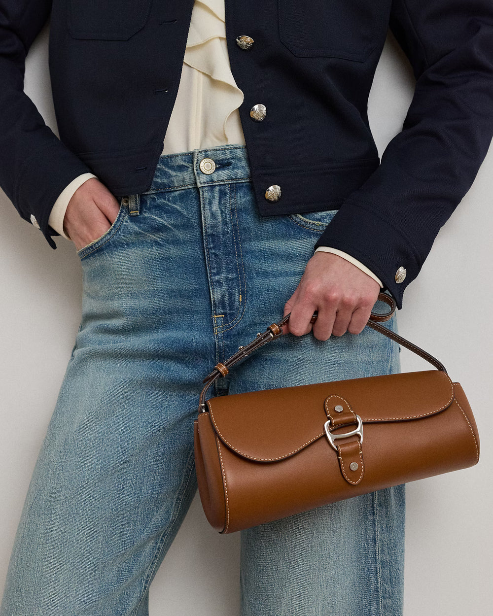 Crafted with supple full-grain leather for a naturally smooth finish, the medium Tasha shoulder bag captures Ralph Lauren's iconic spirit with an equestrian-inspired D-ring and a modern, asymmetrical east-west silhouette. An adjustable shoulder strap provides versatile styling options.