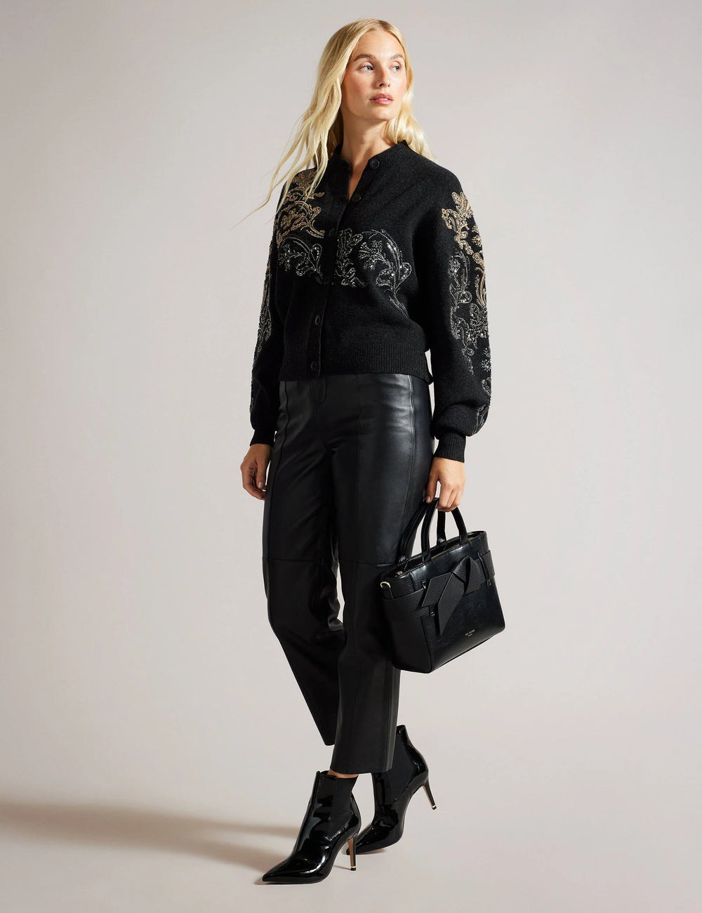 Ted Baker Jimsa Knot Bow Faux Leather Crossbody Tote Bag | Jet Black