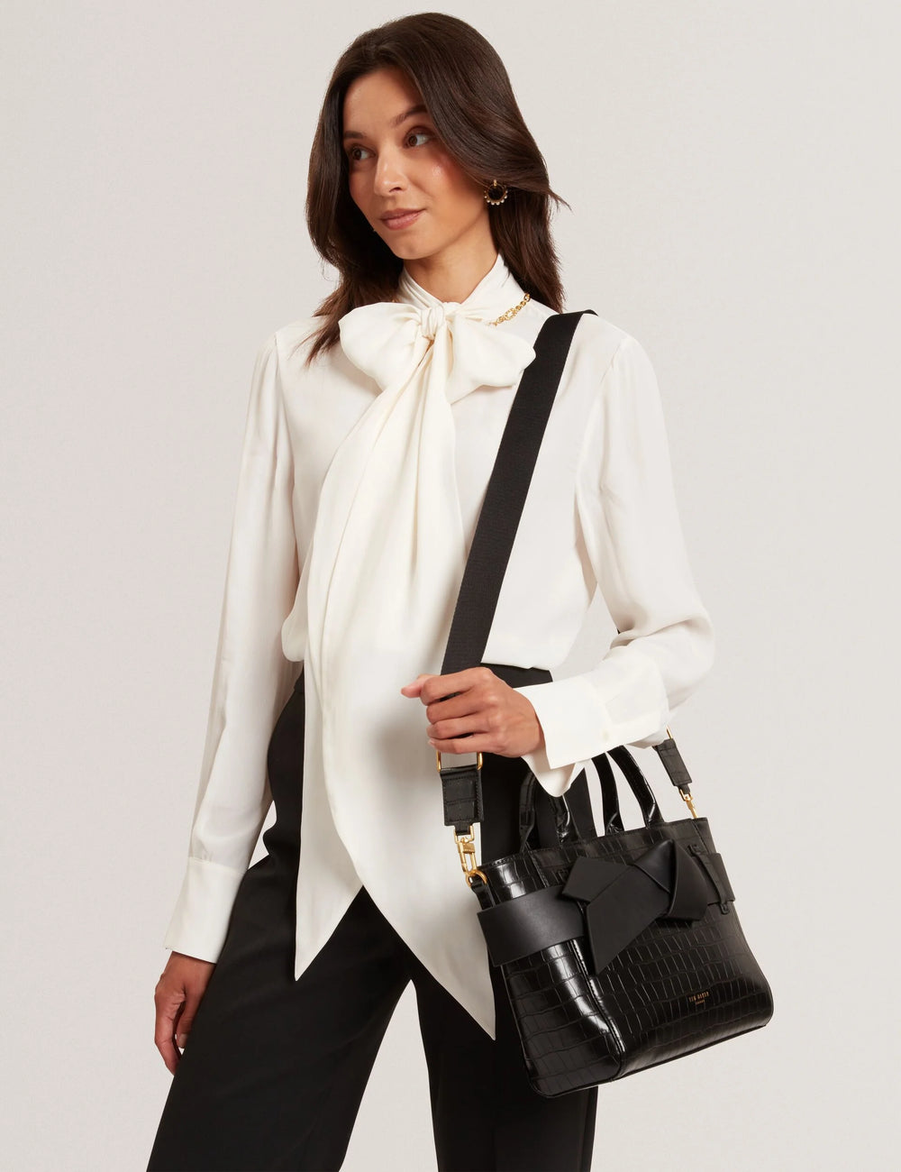 Ted Baker Jjosia Croc Bow Detail Crossbody Tote Bag | Black