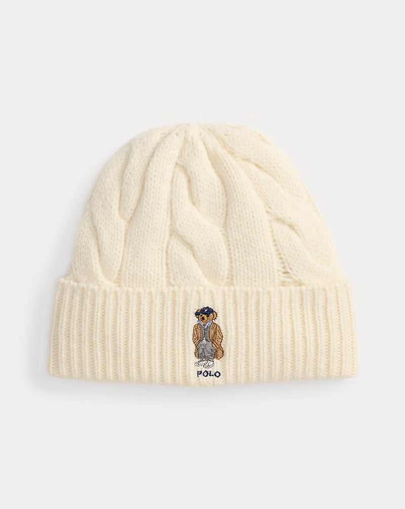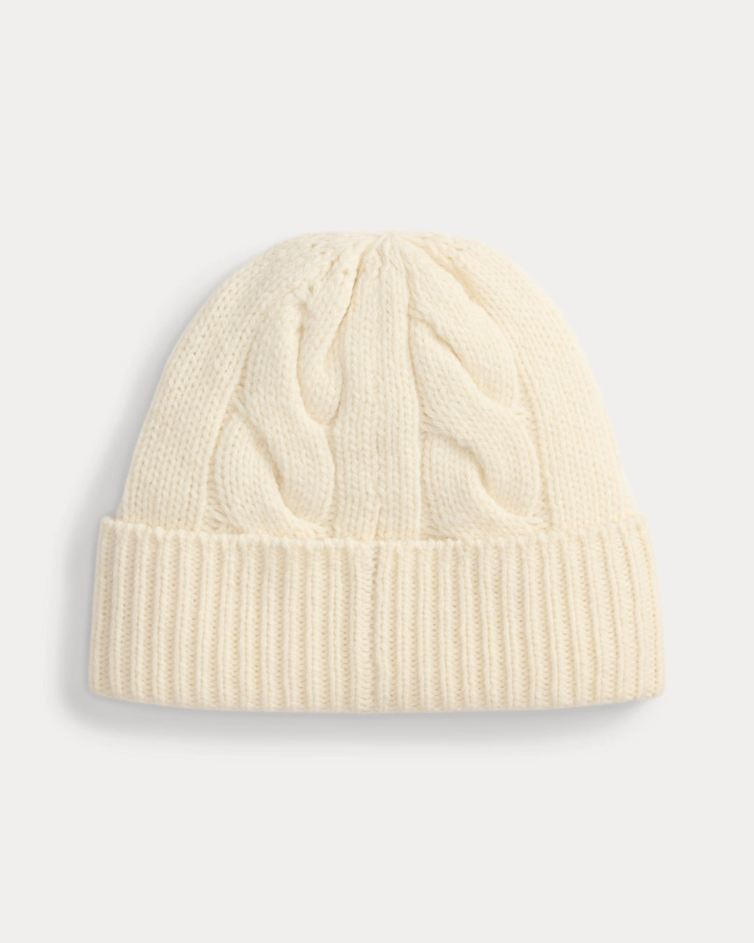Cable-knit with a blend of yarns that includes wool, this beanie is embroidered with the Polo Bear and our signature logo at its fold-over brim.