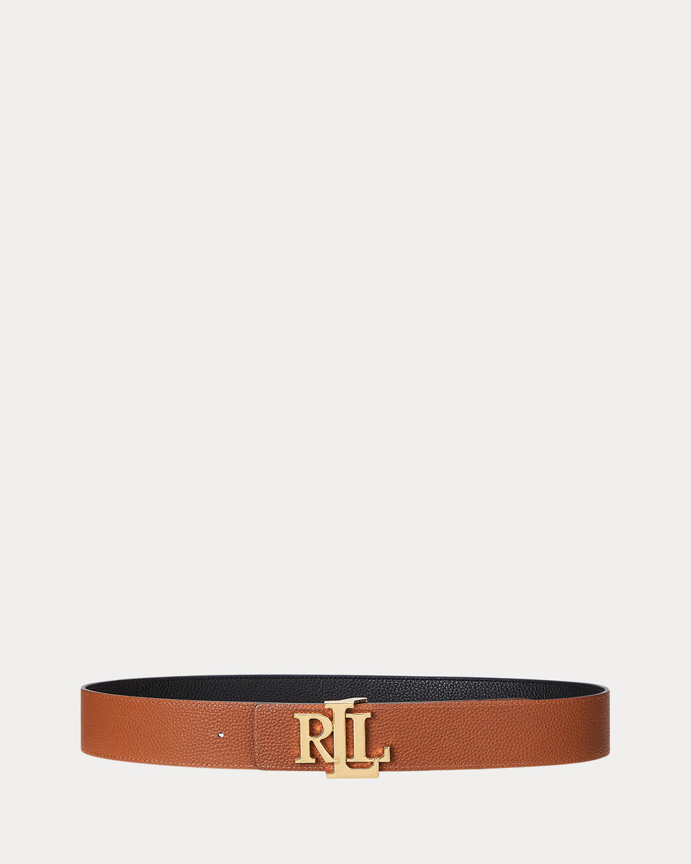 Sumptuous pebbled leather brings subtle texture to this reversible wide belt, which is centred by an oversize "LRL" buckle for an iconic Lauren Ralph Lauren accessory.