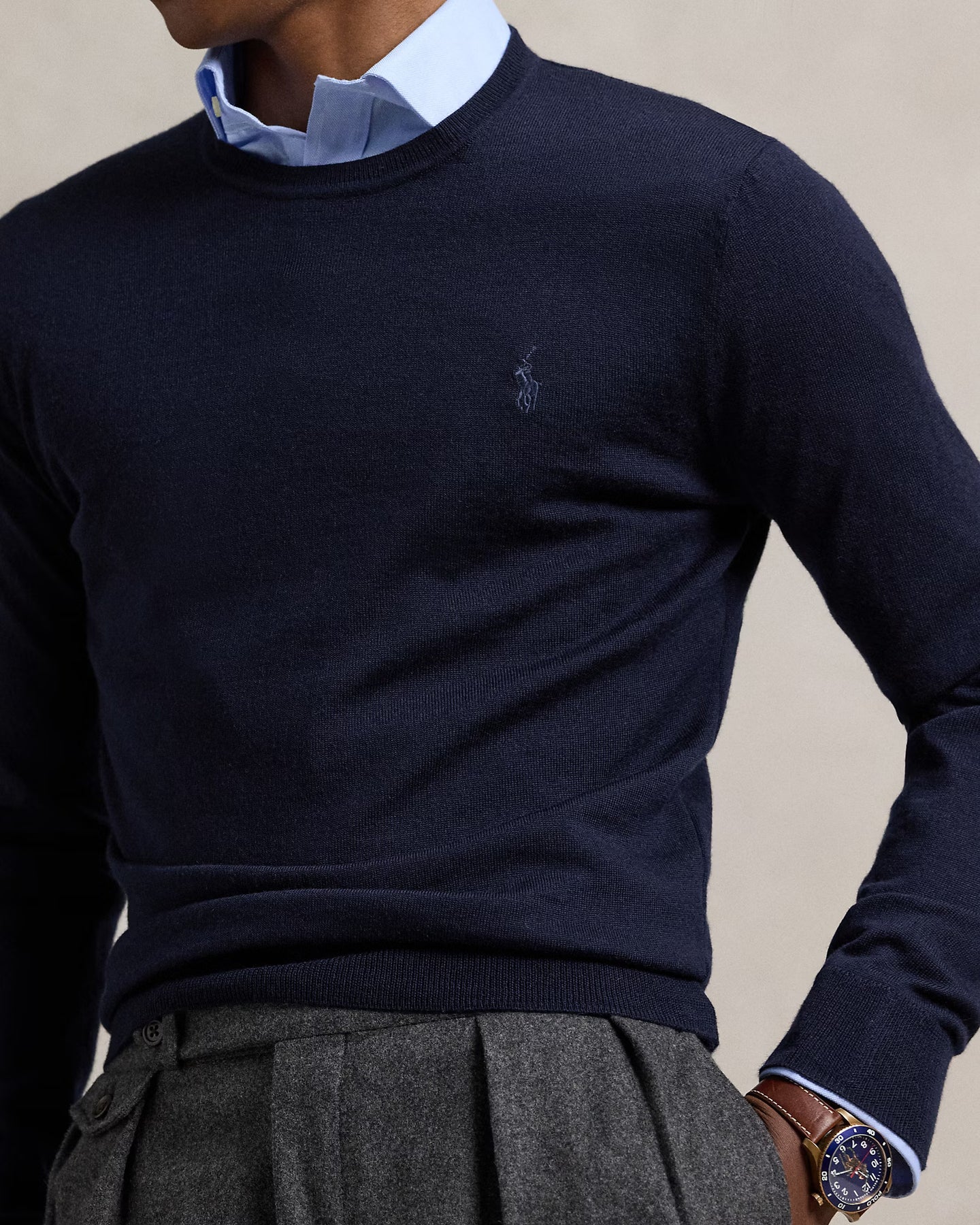 Ralph Lauren Slim Fit Washable Wool Crewneck Jumper | Hunter Navy