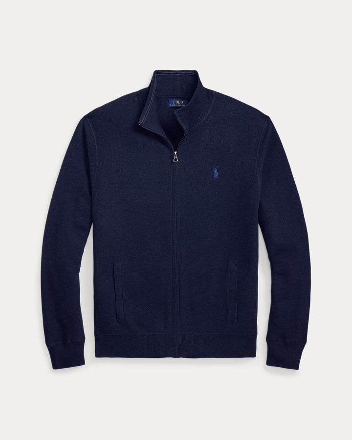 We’ve reinterpreted our iconic mesh fabric with combed cotton yarn to create this full-zip jumper.