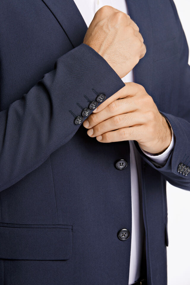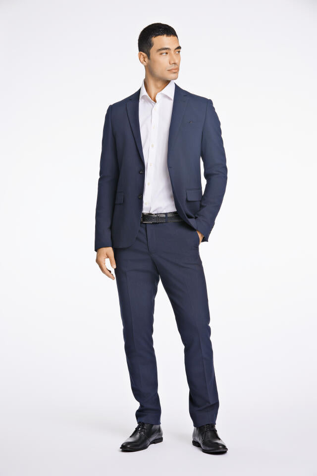 The suit is made in slim fit, so it is a bit tighter on the body than a regular fit. It has also been produced with recycled material.
