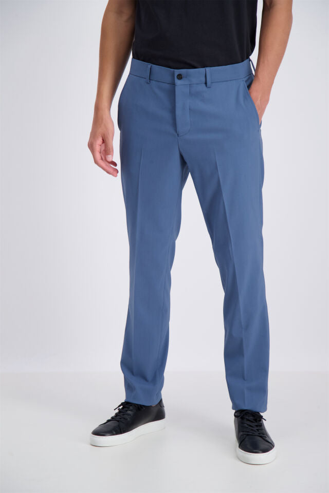 The trousers have two slanted pockets on the sides and two jetted pockets in the back.