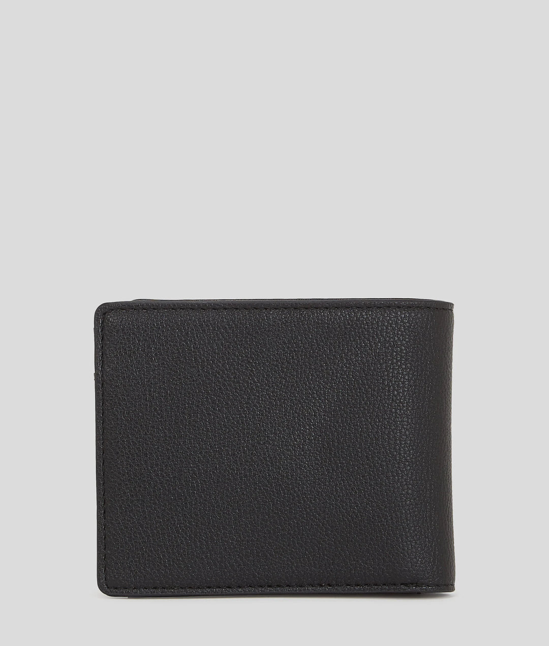 A modern take on an everyday essential, this pocket-friendly bifold wallet combines practicality with a sleek design. Featuring multiple card slots, compartments, and a coin pocket, it’s topped with a metal KARL LAGERFELD JEANS logo for a polished finish.
