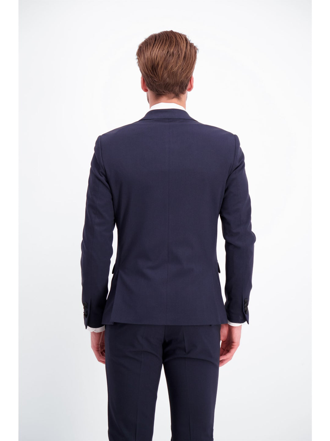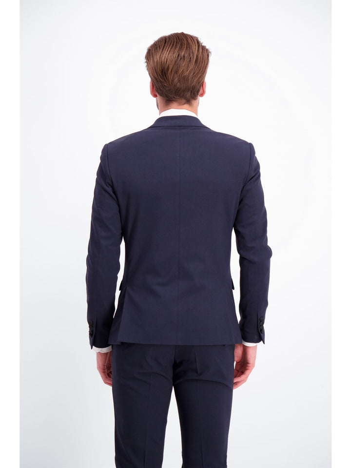 The jacket is in a classic cut, closes with two buttons and has double vents on the back for extra freedom of movement. The buttons on the sleeve and the front are covered with fabric. The lining is 100% polyester.