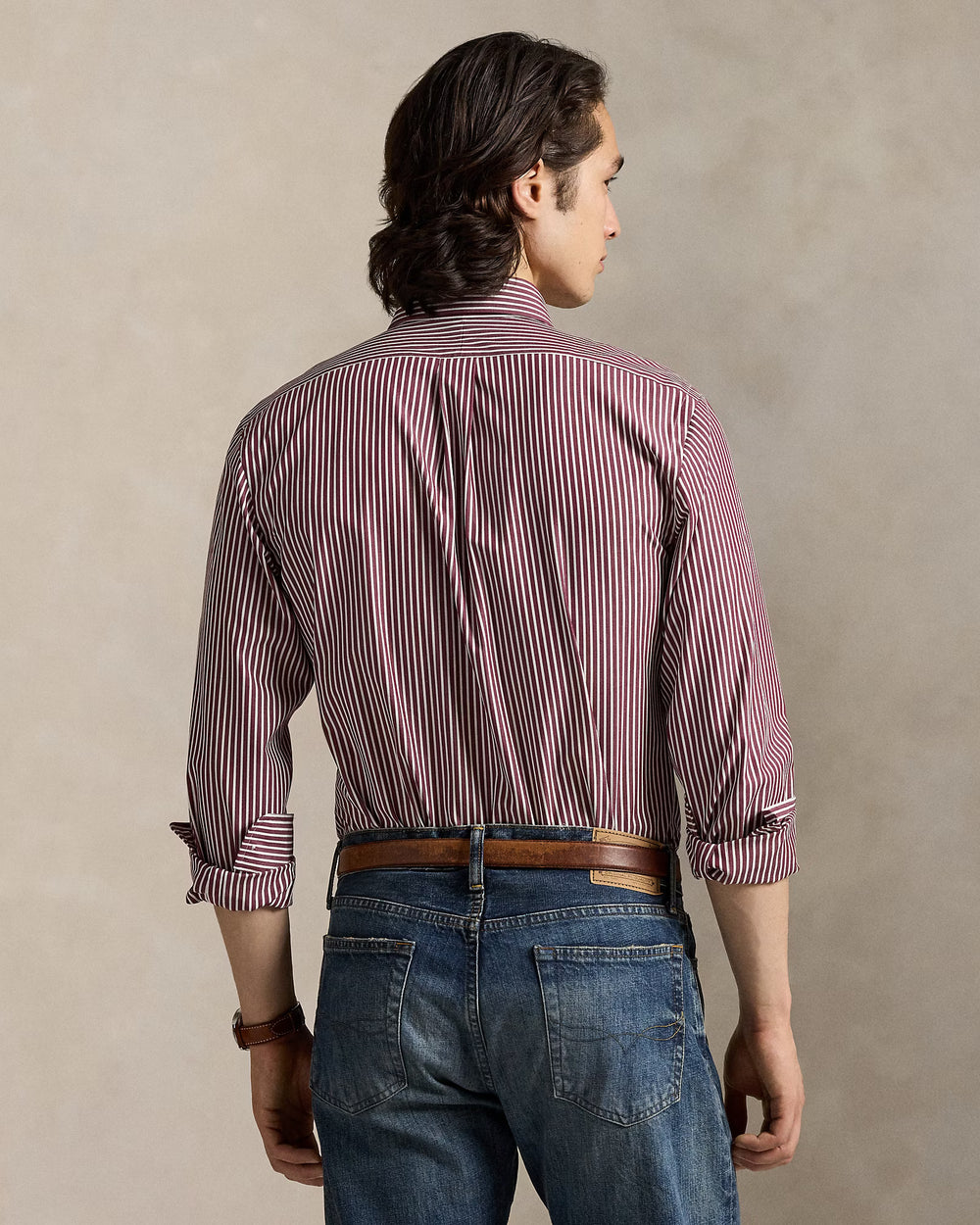 Custom Fit: a trim silhouette in between our Classic Fit and Slim Fit. Tailored through the waist.
