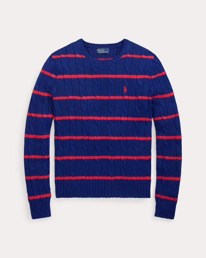 A Polo essential, this striped crewneck jumper is made with soft cotton and showcases our signature cable-knit construction.