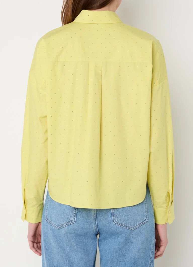 Oversized shirt in cotton poplin fabric featuring all-over rhinestone appliqués. The drop-shoulder model boasts a straight, comfort fit. Breast pocket and rounded hem slit detail, in addition to a darted yoke and box pleat at the back.