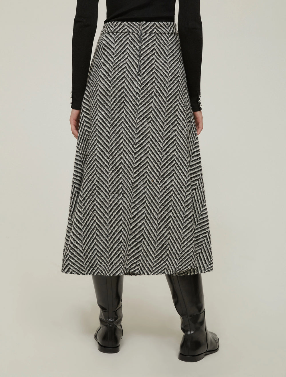 A bon chic silhouette and black & white graphic patterns: this basketweave midi skirt will be the perfect choice for countless occasions.