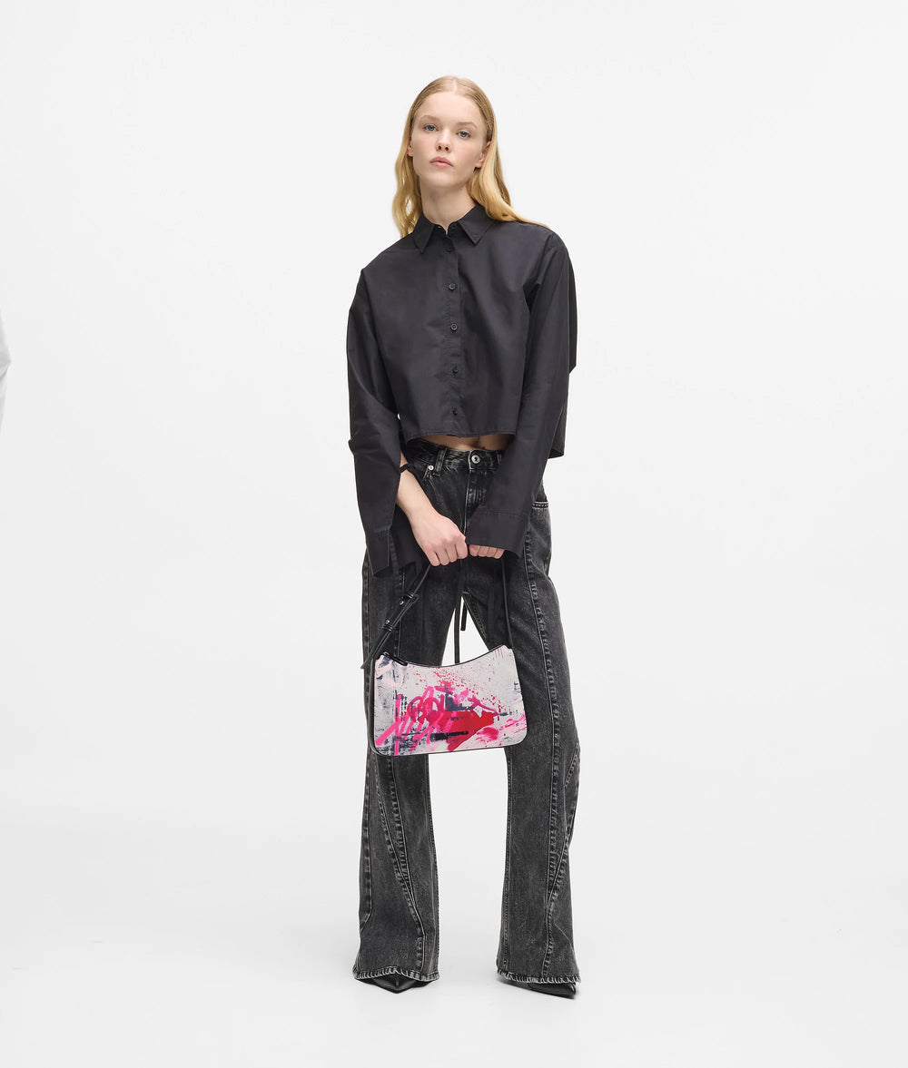 Bold all-over graffiti print with KARL LAGERFELD JEANS metal logo at the front