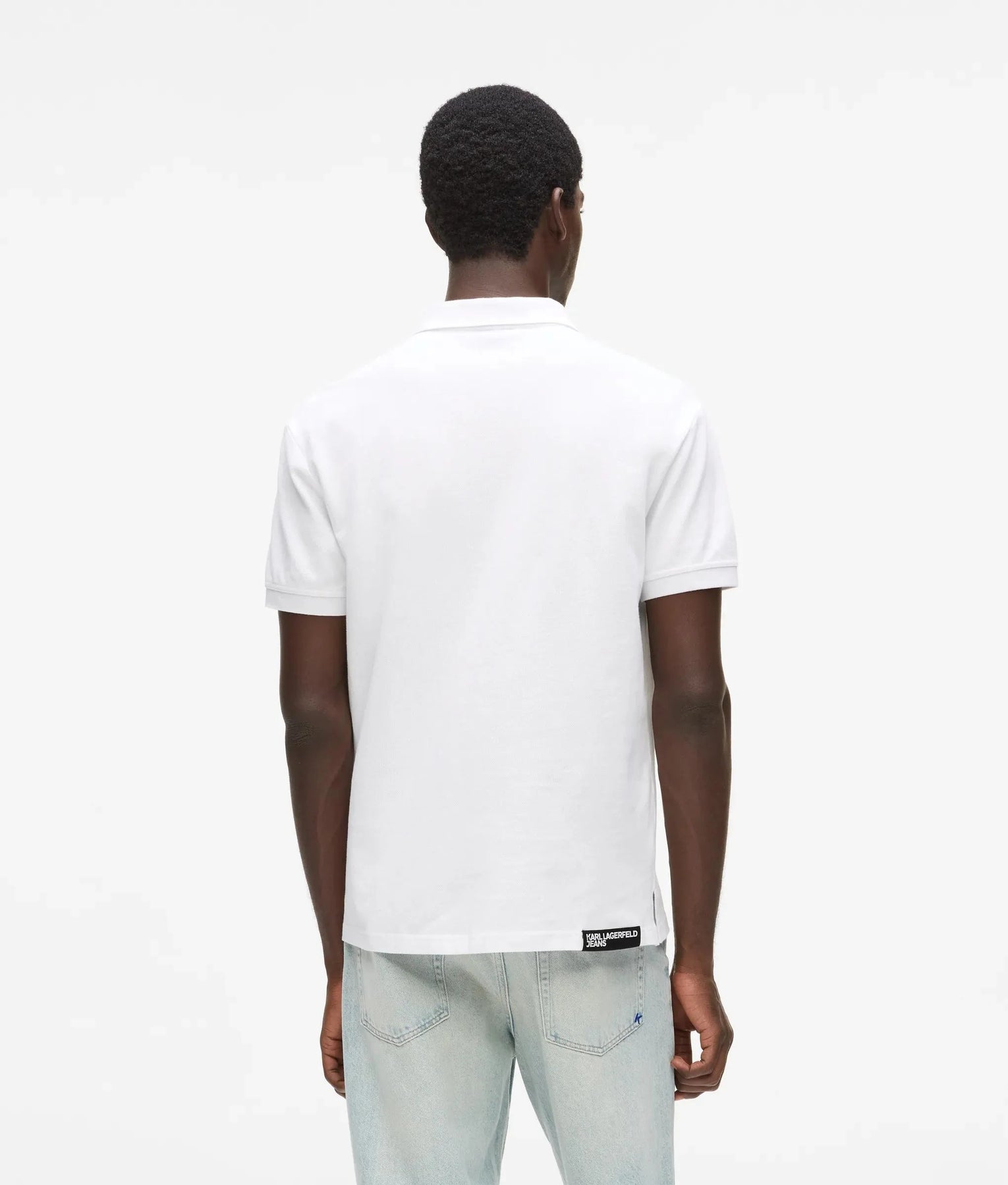The cornerstone of a summer wardrobe, this organic cotton polo shirt offers effortless style and comfort. Featuring a traditional pointed collar and buttoned placket, anchored by a contrasting KARL LAGERFELD JEANS logo at the chest.
