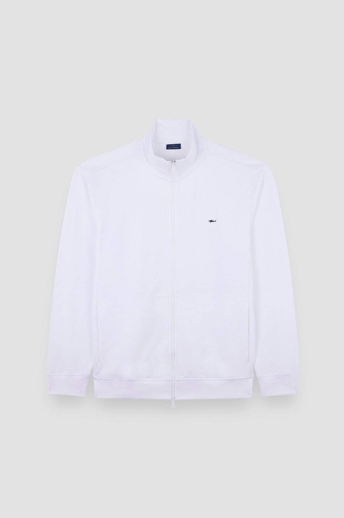 Paul & Shark Shark Badge Stretch Fleece Cotton Full Zip Sweatshirt | White