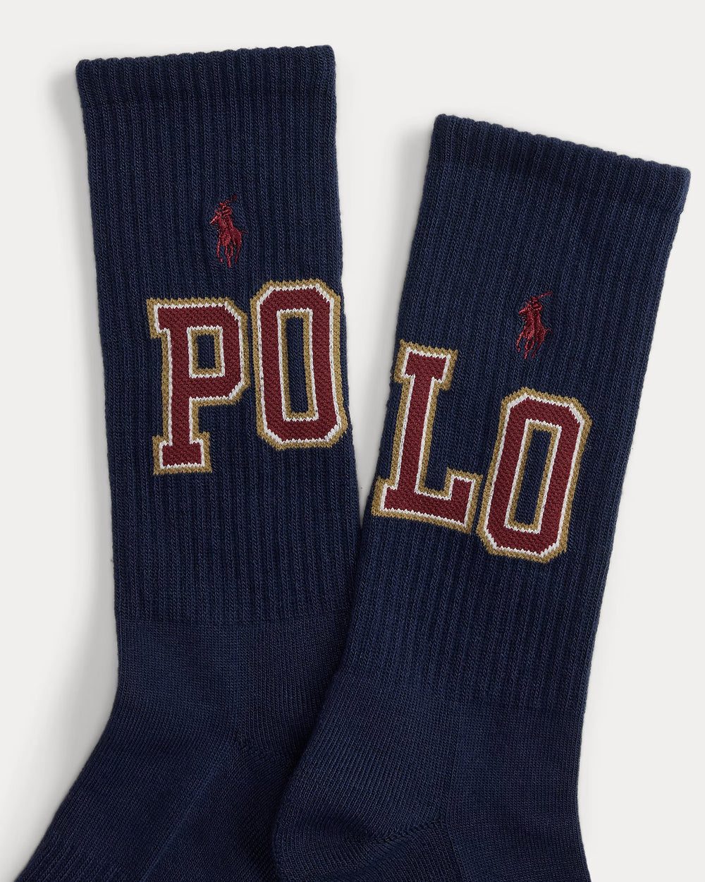 Polo's collegiate-inspired logo and signature embroidered Pony adorn the rib-knit cuffs of the ultra-soft crew socks in this six-pack.